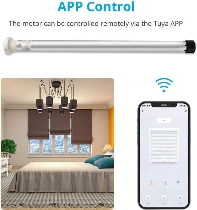 Smart Blind Motor: Build-in Wi-Fi module, this tubular motor is compatible with Remote Control, APP Control and Voice Control.