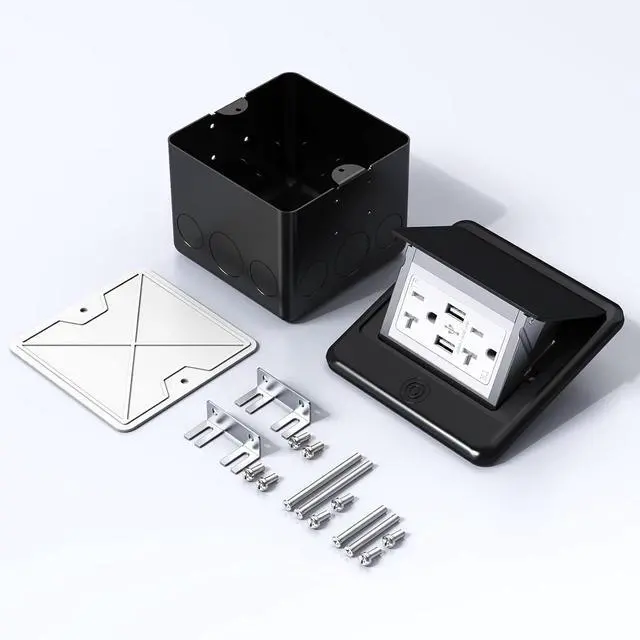 KYHSHJ floor box can be installed in hardwood flooring, carpeting, tile flooring, granite and marble counter tops.