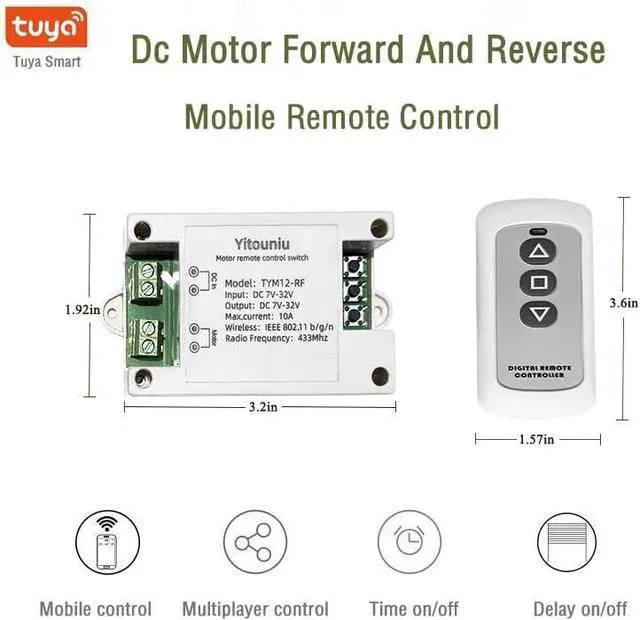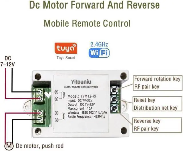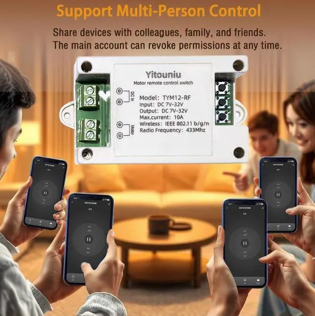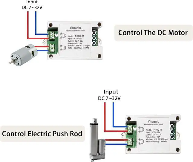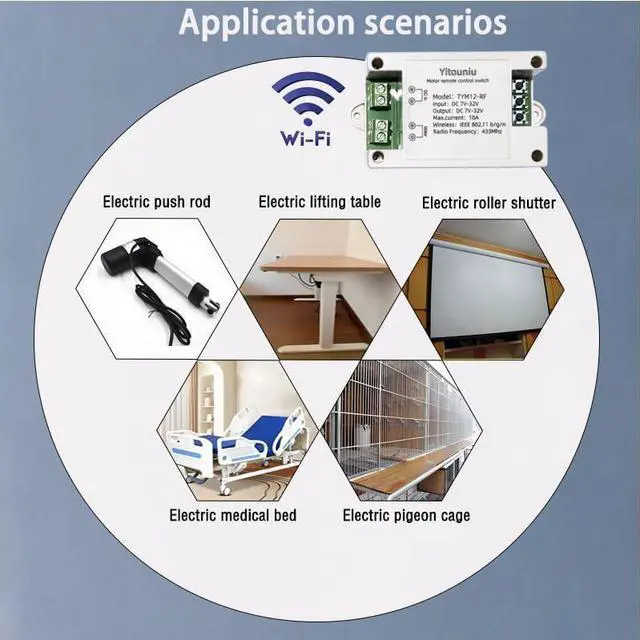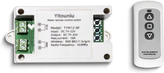 10A High Power & Wide Voltage Compatibility Handles 10A max load and DC 7-32V input, compatible with low-voltage motors. 433MHz RF ensures stable signals for precision in, desks, curtains, and medical beds.
