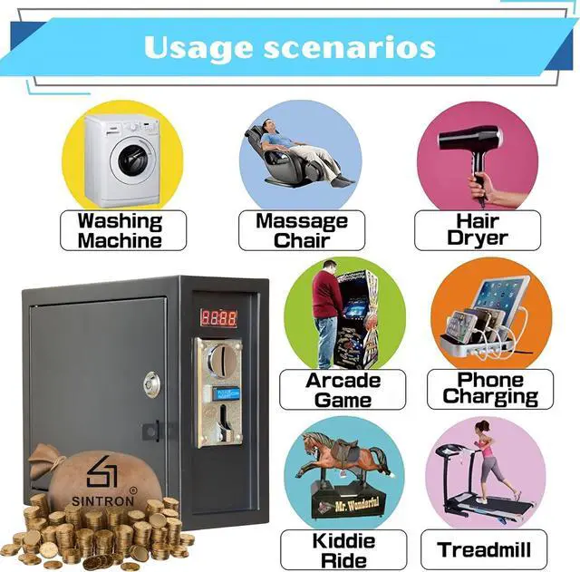 MULTI-APPLICATION: Coin operated timer control box can be used in a lot of public places: gaming machines, massage chairs, washing machine, shoe polishers, chargers, and PCs.