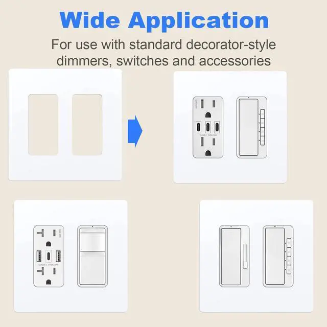 [WIDE APPLICATION]: For use with standard decorator-style dimmers, switches and accessories. Perfect for any room and make a noticeable upgrade. Wonderful choice for home renovations, electricians, contractors.