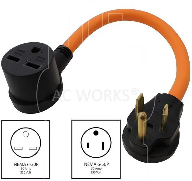 AC WORKS NEMA 6-30 Commercial Heater Adapter (50A Welder 6-50R Outlet-Flexible)