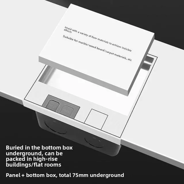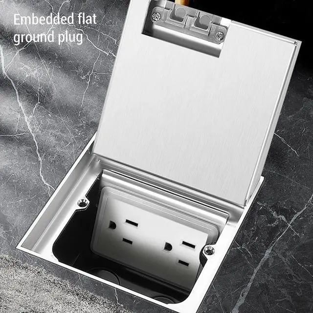 Premium MaterialBuilt with high-grade stainless steel and robust PC materials, this flat concealed floor electrical outlet kit offers superior strength and long-lasting performance in high-traffic areas.