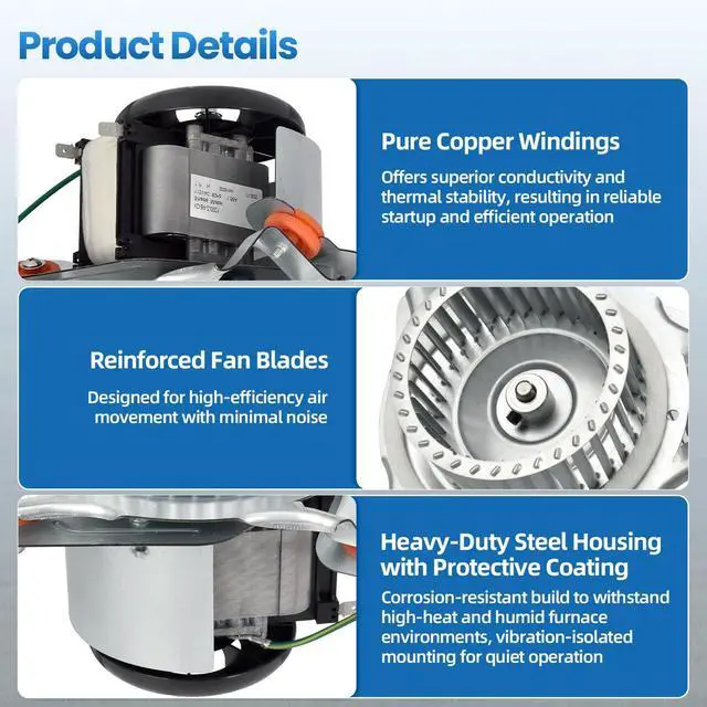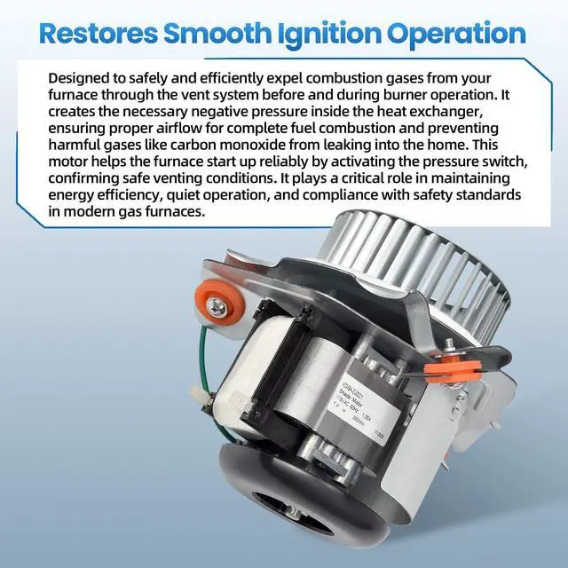 Functions:This motor kit helps vent combustion gases out of your carrier furnace, ensuring safe operation by creating proper airflow through the heat exchanger. It starts before ignition and runs throughout the heating cycle to maintain consistent exhaust pressure and system efficiency. Important Note: Always check your replacement part number to confirm compatibility before purchasing.