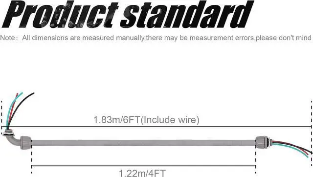 Packing Quantity:A/C Whip Kit comes with 10 gauge copper (3 conductors - red, black, and green) and a pair of fittings - one straight and one 90 degrees, both with neoprene O rings to seal your application,4FT Nonmetallic Liquid Tight Flexible Electrical Conduit.