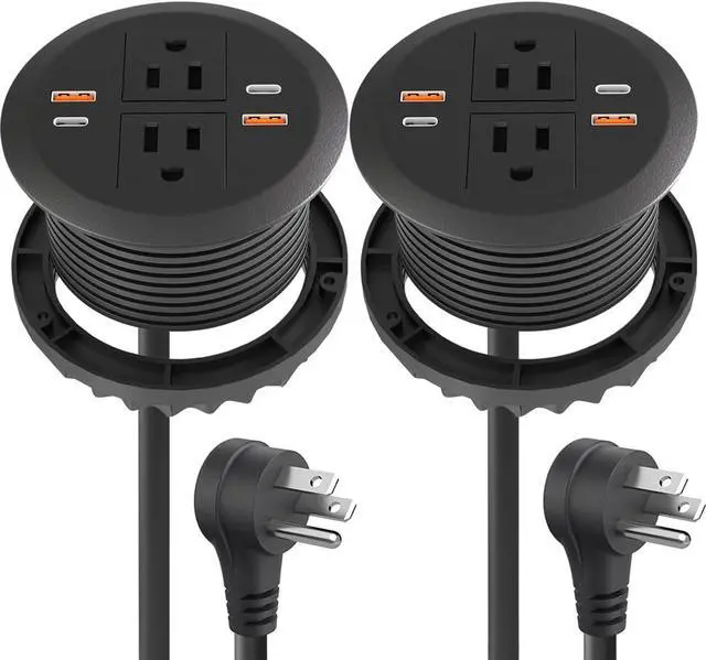 All-in-One Recessed Power Outlet - 2 AC outlets,2 USB-A ports,and 2 USB-C ports power everything on your desk from a single recessed power grommet,6.41 ft extension cord