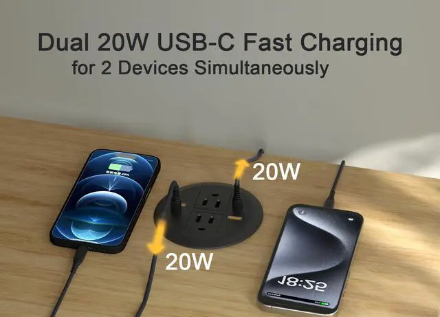 Dual 20W USBC,double charging efficiency - Charge an iPhone 14 to 50% in just 30 minutes.Simultaneous use of 2 USB C,both of which can achieve a fast charging rate of PD20W with a total output of up to 40W