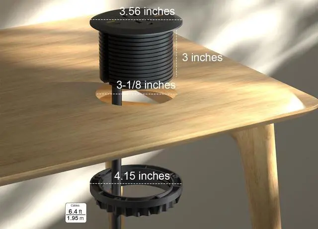 Super easy installation - Insert the desktop power grommet into the 3-1/8-inch desk grommet hole,rotary locking ring