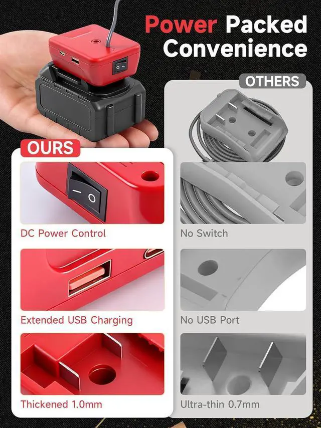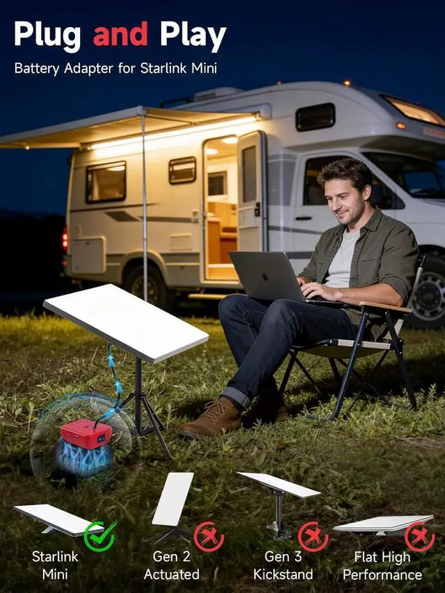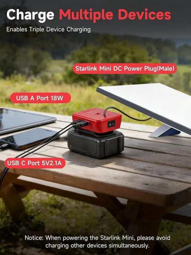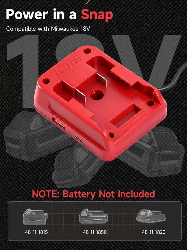 Compatible with Milwaukee 18V Batteries Engineered for seamless compatibility with Milwaukee 18V power tools batteries (models 48-11-1815, 48-11-1820, 48-11-1822). Directly powered by the battery, provides portable power for Starlink Mini devices during travel (Battery not included)