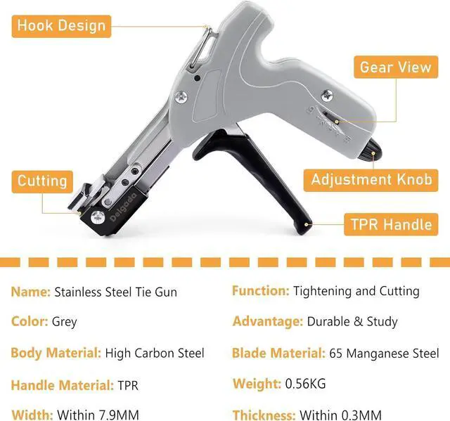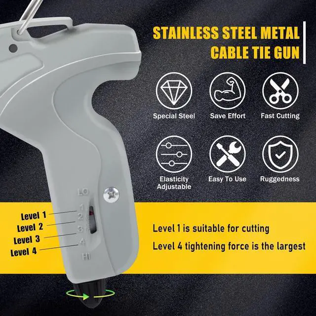 Metal Zip Tie Tool: Quickly install stainless steel cable ties with one-squeeze tension adjustment. Versatile, ergonomic design reduces fatigue for lasting use
