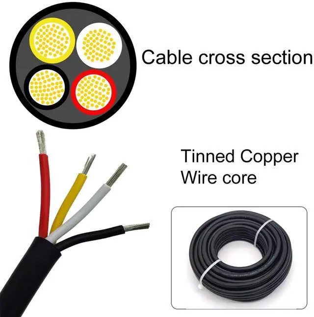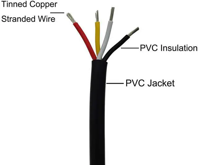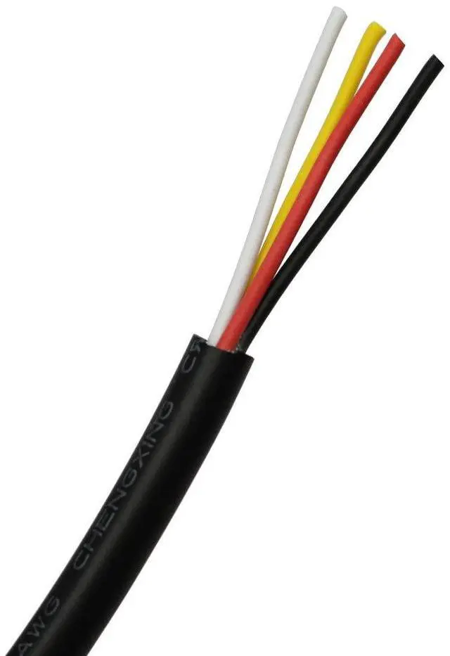 Conductors: 24 Awg (4 PVC insulated conductors red yellow black and white) Rated voltage 300V, rated temperature 80°C