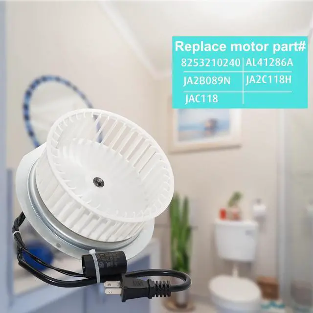 Replace Nutone part#: 0695B000. Replaces motor#: 8253210240 / AL41286A / JA2B089N / JA2C118H / JAC118. Perfect replacement for NuTone 0695B000 motor assembly for QT80 series fans