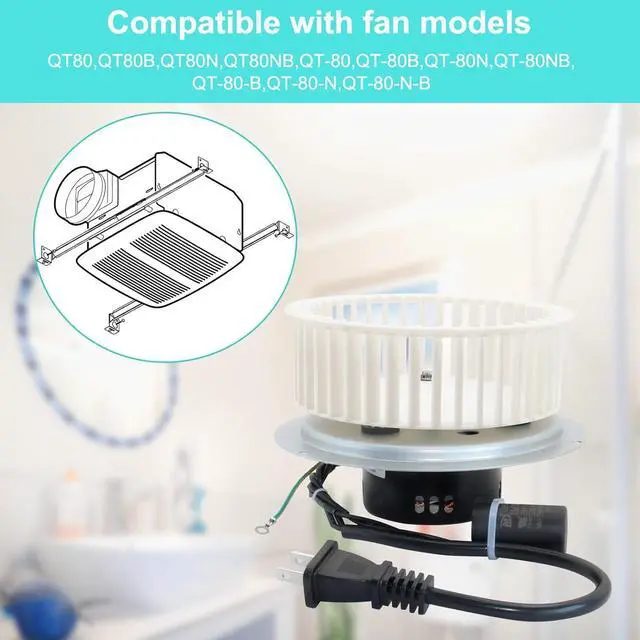 Compatible with Nutone models: The 0695B000 replacement motor assembly compatible with Nutone QT80 series bathroom fan motor assembly replacement. (QT80, QT80B, QT80N, QT80NB, QT-80, QT-80B, QT-80N, QT-80NB, QT-80-B, QT-80-N, QT-80-N-B)