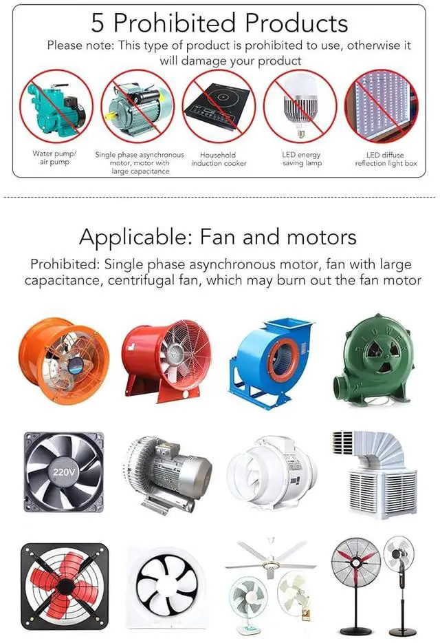 WIDE APPLICATION: Applicable to excitation motors, electric tools and resistive loads, such as fans, handheld routers, electric kettles, electric stoves, electric soldering irons, etc.