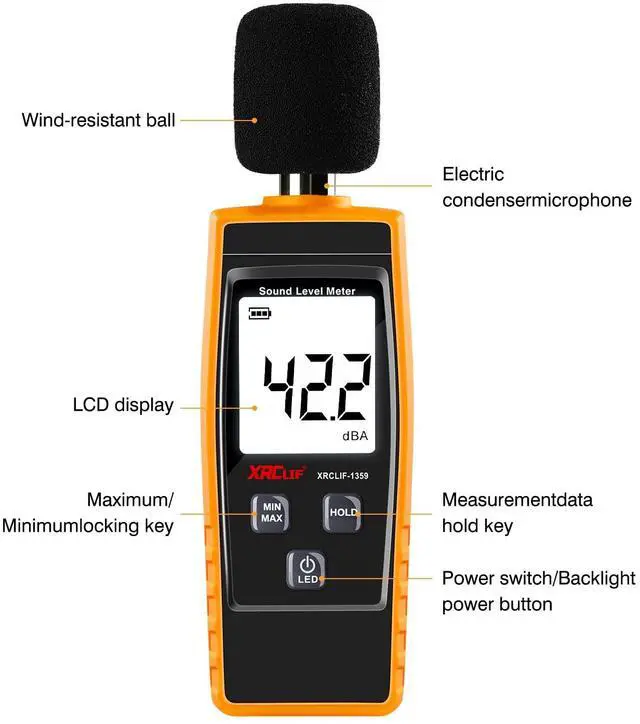 Portable sound level meter is light and compact design, easy to carry with you and operate with one-hand