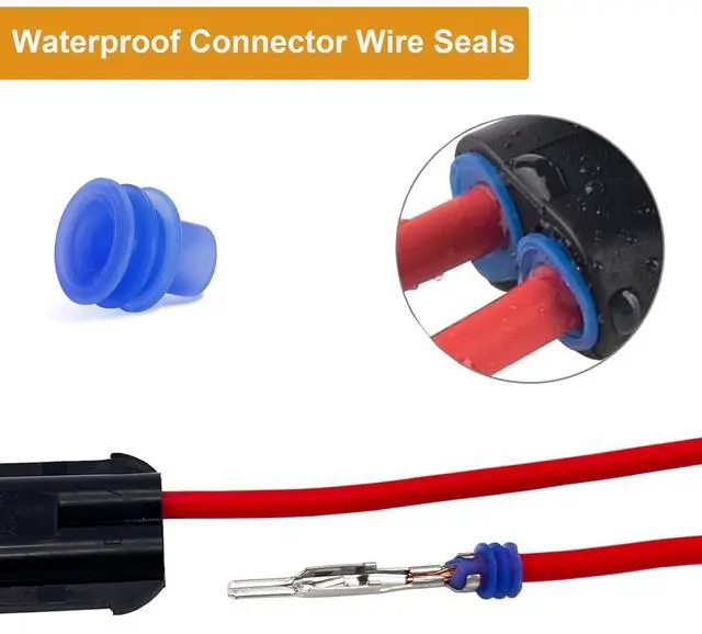 Function of Weatherpack SealsTwippo weather pack cable seals are manufactured of self-lubricating silicone, waterproof and dustproof, cavity plugs kit include gray 24-20 gauge 100pcs, yellow 22-16 gauge 100pcs, red 18-14 gauge 100pcs, blue 14-12 gauge 100pcs. Metric-pack seals compatible with different types of Twippo automotive electrical wire connectors of 24-12 AWG.