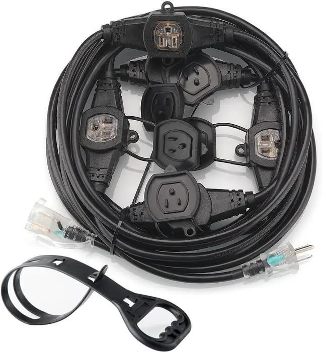 Weather-Resistant Design The good quality of the SJTW cable 105 with the FT-1 level fire resistance.resists moisture, abrasion,suitable for indoor/outdoor using,each socket protected by a safety cap against rain, snow, and dust,stay flexible in cold weather.