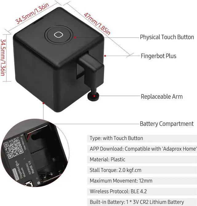 APP Control: Compatible with 'Adaprox Home' APP, easy to control the smart fingerbot via smart APP in your mobile phone anytime and anywhere.