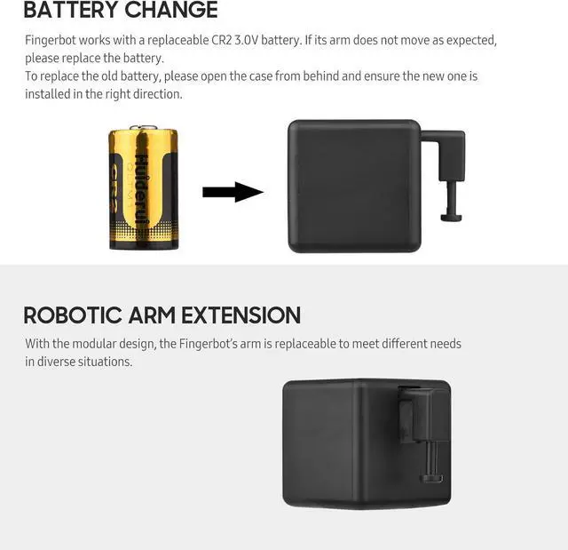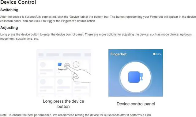 Touch Control: The physical button allows the Fingerbot to be activated without using your phone. Place your finger on the button at least 0.1s. The Fingerbot will be triggered.