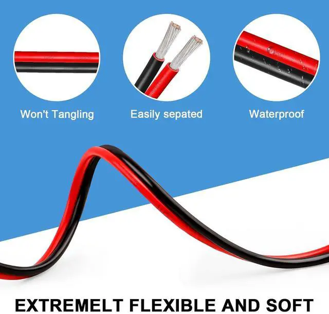 Material : 12 AWG PVC High-purity oxygen-free Tinned Copper wire, 2 Conductor Parallel Wire 50 Feet, Black and Red each color 50 Feet, PVC insulation thickness:0.76±0.07mm, Diameter:7.1±0.3mm.