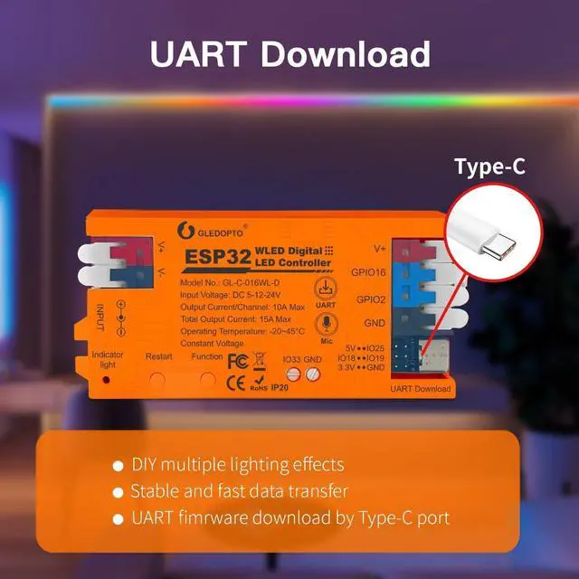 Efficient ESP32 Chip, Easy Control: This light strip controller is equipped with a high-performance ESP32 chip, showing remarkable strength. With its powerful function, it can directly and seamlessly connect to the wled app via Wi-Fi, getting rid of the gateway limitation. It makes intelligent control effortless and the operation process simple and clear