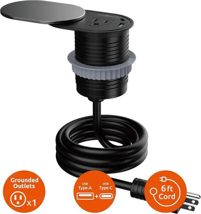 CONVENIENT POWER ACCESS: Features 1 grounded AC outlet and 1 USB A/C port (3.1A) to charge or power devices like phones, laptops, lamps, and more without clutter