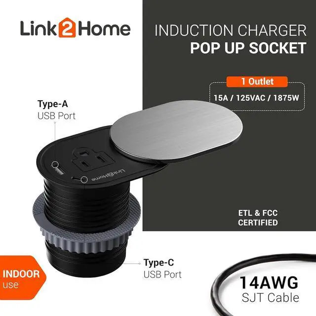 MODERN, CLEAN LOOK: Fully retractable with a premium stainless-steel finish, this socket delivers power while maintaining a sleek, professional appearance