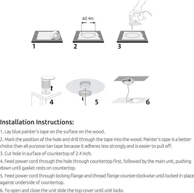 EASY TO INSTALL: Designed for seamless setupjust drill a 2.42.5 in. hole, insert the unit from the top, and tighten the ring from below for a secure, tool-free fit