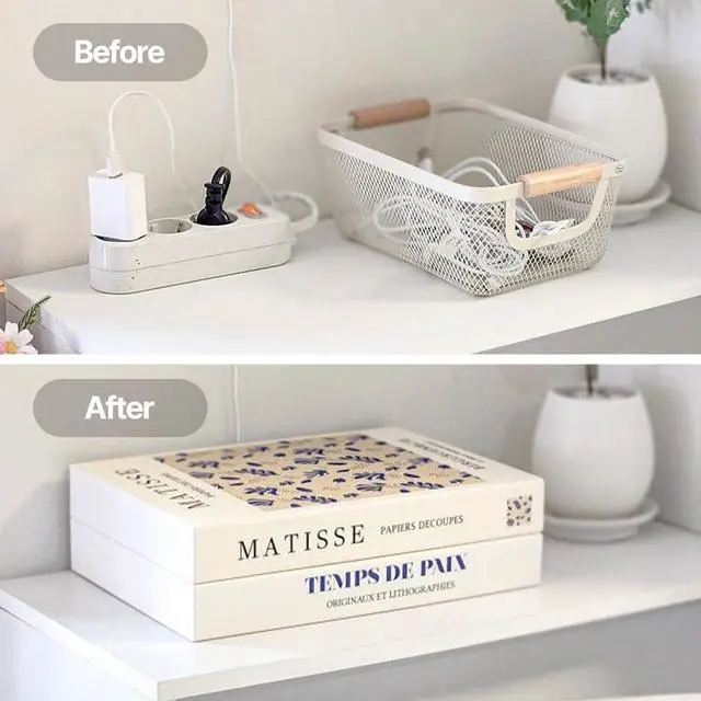 Decorative Cable Organizer Box The Tastepick novel book design cable box resembles a stack of two books with realistic, high-quality printing, seamlessly blending into your decor while neatly hiding electrical cords and power strips.