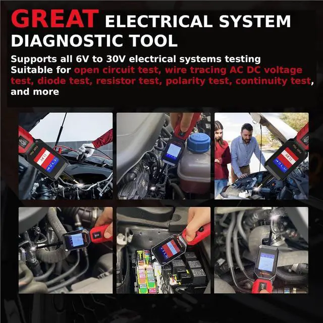 Versatile Testing CapabilitiesThis automotive circuit tester offers comprehensive diagnostic functions including open circuit tests wire tracing AC DC voltage testing diode tests resistor tests polarity tests and continuity checks, its multifunctional design makes it an essential tool for complete vehicle electrical system analysis and troubleshooting