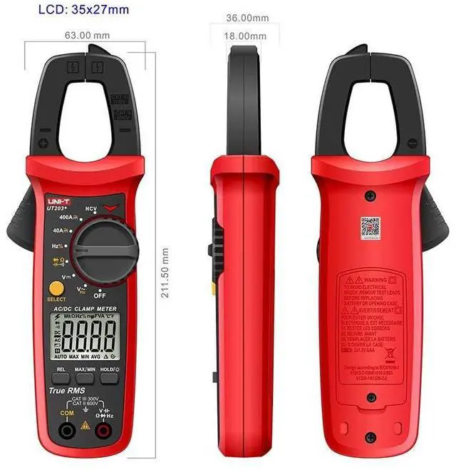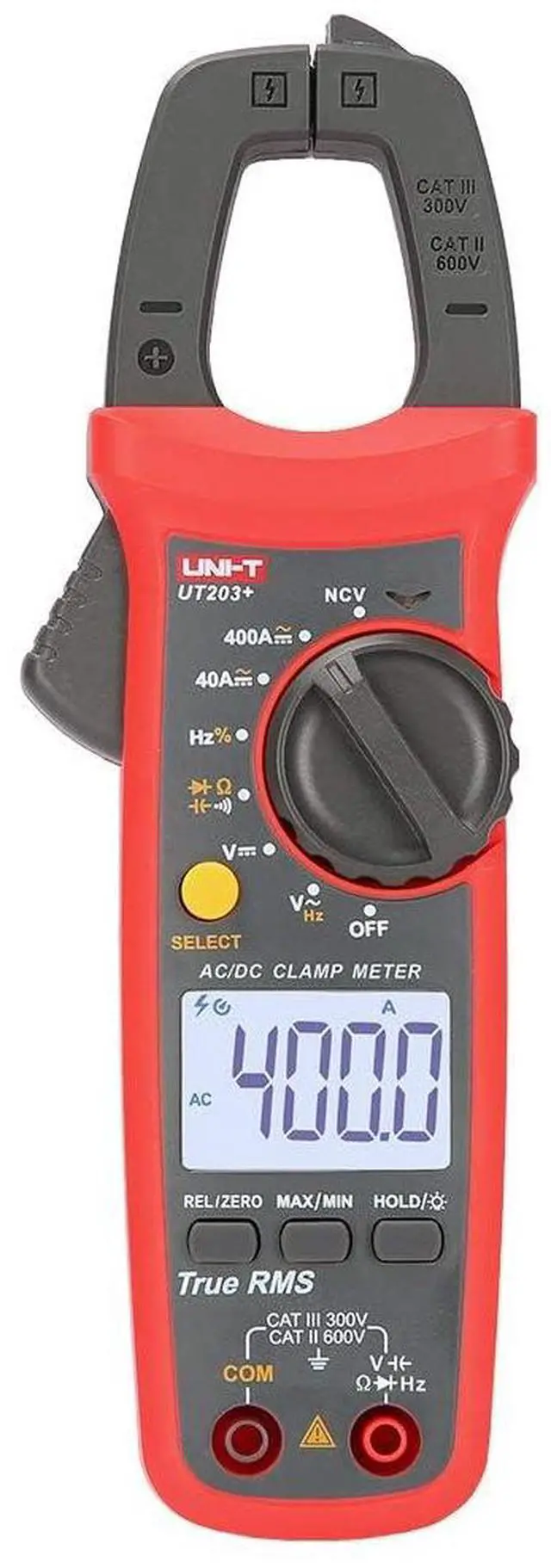 UT200+ series digital clamp meters are designed according to EN61010-2010 CAT II 600V/CAT III 300V, featuring overload protection, high reliability, high safety and high accuracy. These meters can be used to measure high-voltage frequency, temperature, AC/DC current, etc.Models in UT200+ Series: UT201+, UT202+, UT202A+, UT203+, UT204+