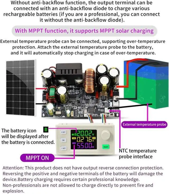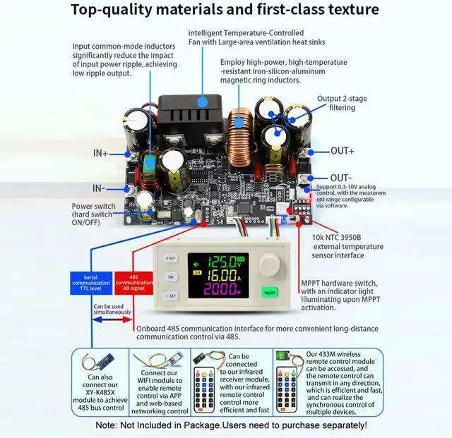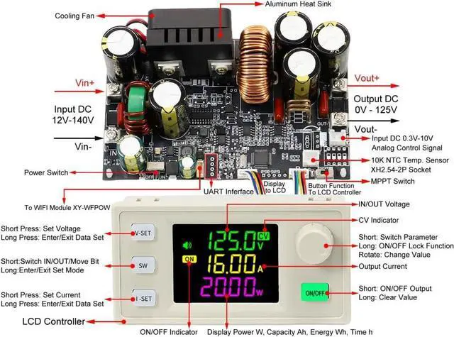 2000W High Power: It adopts digital control technology to obtain stable output power supply. Up to 2000W output power which can meet the vast majority of needs. Input DC 12V-140V and max output 125V/22A/2000W equipped with aluminum heat sink and fan.