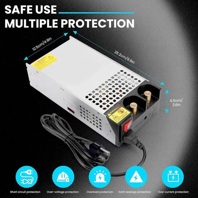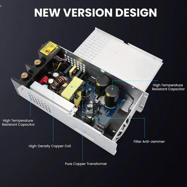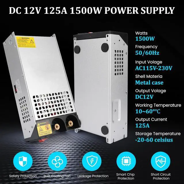 Safe Reliable: DC 12V 125A 1500W Power Supply housing is made of frosted and aluminum alloy materials; with 4 anti slip bracket pads for easy installation. Has overload protection, overcurrent protection, over temperature protection, and short circuit protection, which can protect your equipment from damage and maintain long-term use.