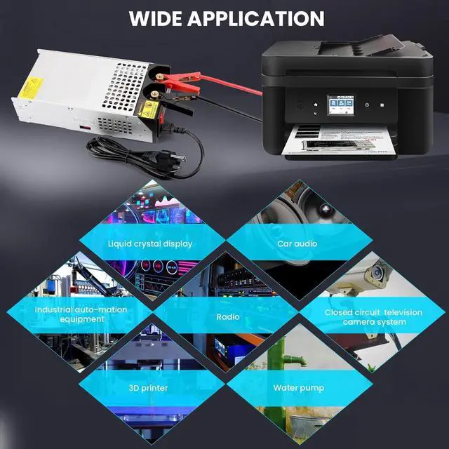 Widely Used: The power supply can be applied to 12V industrial automation equipment, radios, closed-circuit circuits, television camera systems, LCD displays, water pumps, 3D printers and more 12V devices.