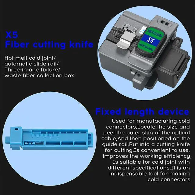 X5 Fiber cleavers Fiber Fixture is suitable for bare fiber, pigtail and leather cable. Applicable to single fiber 0.25/0.9/3.0mm fiber. With Fiber Scrap Collection box, this fiber cleaver is compact and light-weight , convenient to carry and use.
