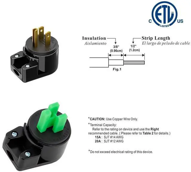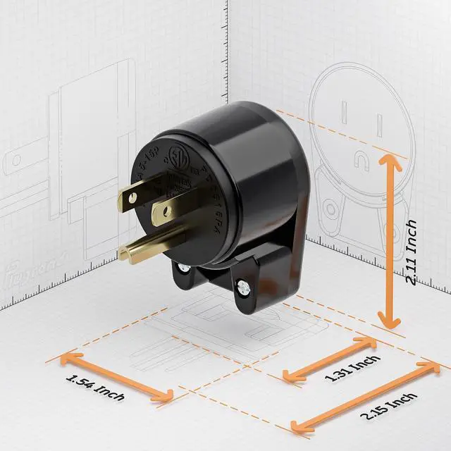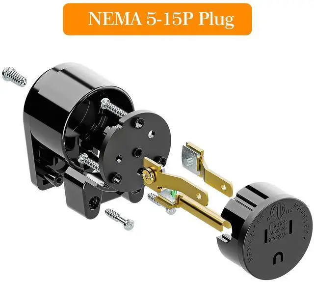 (5 Pack) Nema 5-15P 90 Degree Right Angle Plug 15A 125V Angled Plug, Nema 5-15P DIY AC Plug,USA 3-Prong Household Right Angle AC Plug, Black ETL Verified