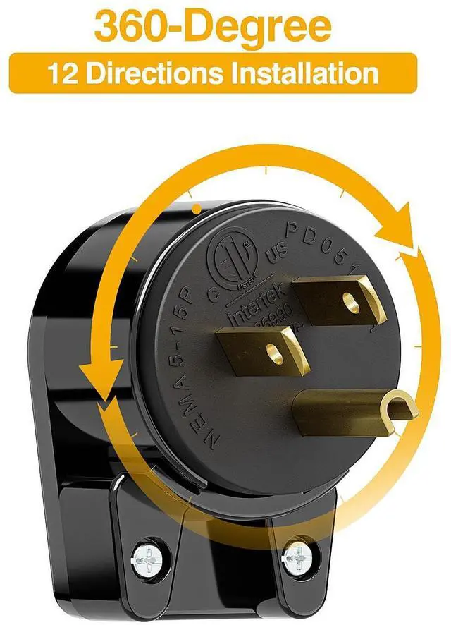 (5Pack) 15A 125V Right Angle Rewirable Plug, Nema 5-15P 3-Prong Male DIY AC Plug, 12 Direction USA 3 Prong Power Plug, Black