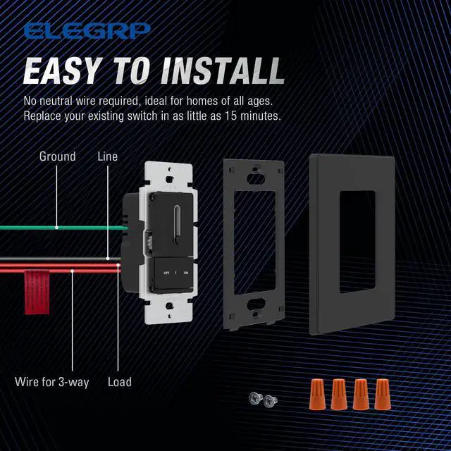 Easy to install NO NEUTRAL WIRE REQUIRED - ideal for homes of all ages. Replace existing switch or dimmer in as little as 15 minutes. Ultra slim profile, easily fits in electrical box and wall plate.