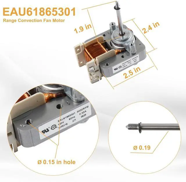 Product Introduction: EAU61865301 Range Convection Fan Motor Compatible with LG Stove Ovens AC Blower, Replace Part Numbers EAU60722701, AP5679700, PS7791924, 2666419, AP5195470, EAP7791924, STPD00051624