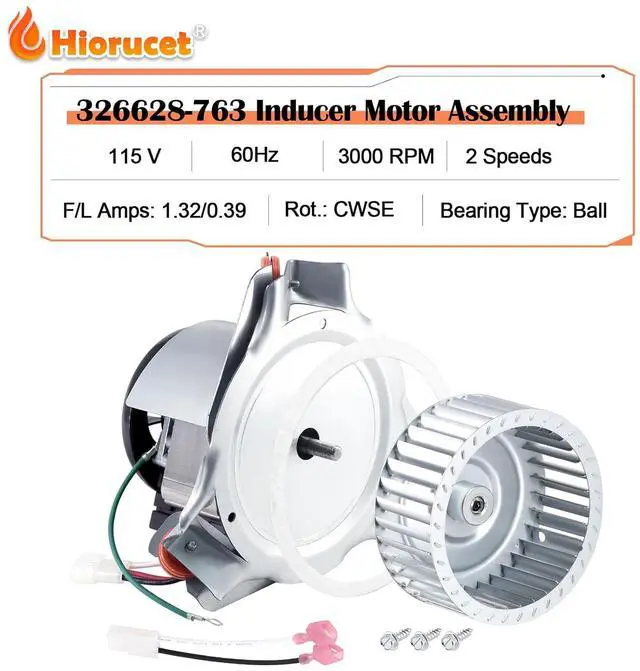 Included With Purchase - This carrier 326628-763 inducer assembly kits include blower motor, 2 Speed Plug, Cooling Fan Shield, Blower Wheel, Mounting Bracket,Screws & Gasket. This blower replaces part numbers packard draft inducer fan furnace blower motor for carrier 326628-763 and comes with a 365 day return and exchange.