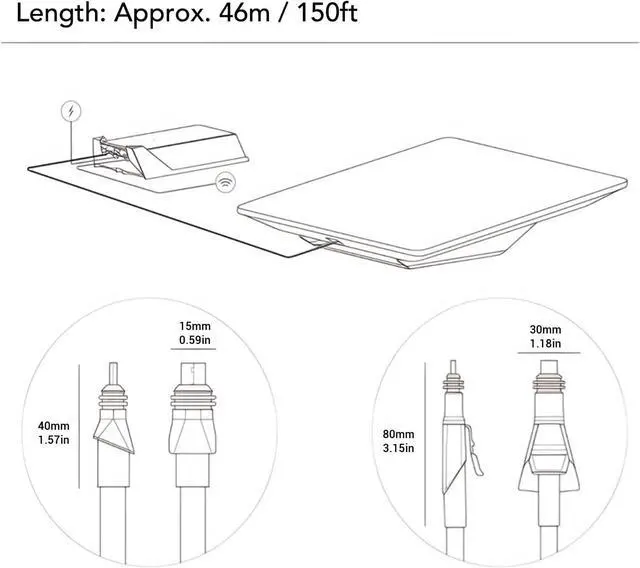 PLUG AND PLAY---RECTANGULAR SATELLITE 150FT REPLACEMENT CABLE. Thanks to the user friendly design, the rectangular satellite replacement cable can be easily installed without any complicated procedures, saving your time and effort
