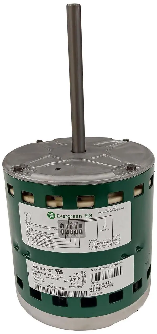 Designed to replace direct-drive blower motors in residential and light commercial indoor furnaces, air handlers and package systems that were designed with a 6-pole 1075rpm rated PSC motor