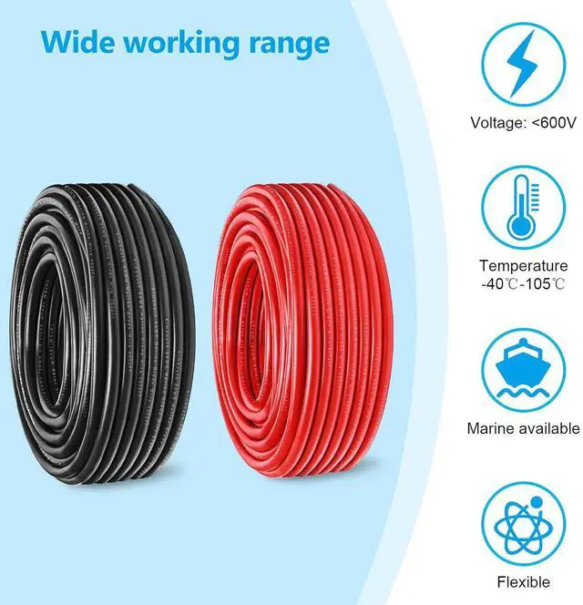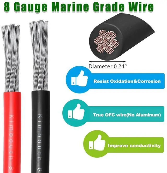 Standard 8 gauge wire that used in lighting systems, boat applications, automotive applications, household circuit systems and other daily environments, and can also be used in extreme environments such as rivers, lakes, solar applications and marine