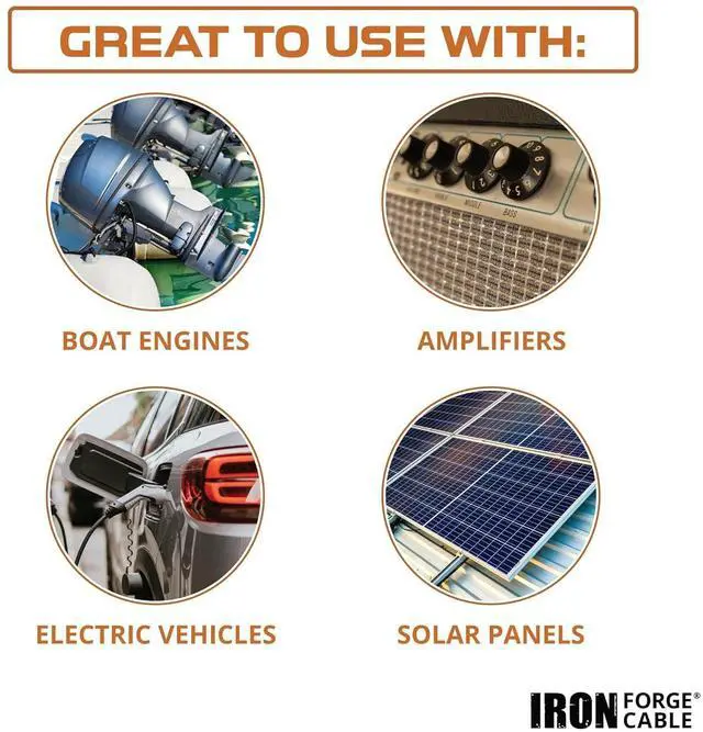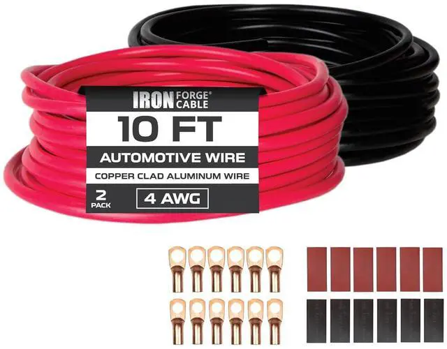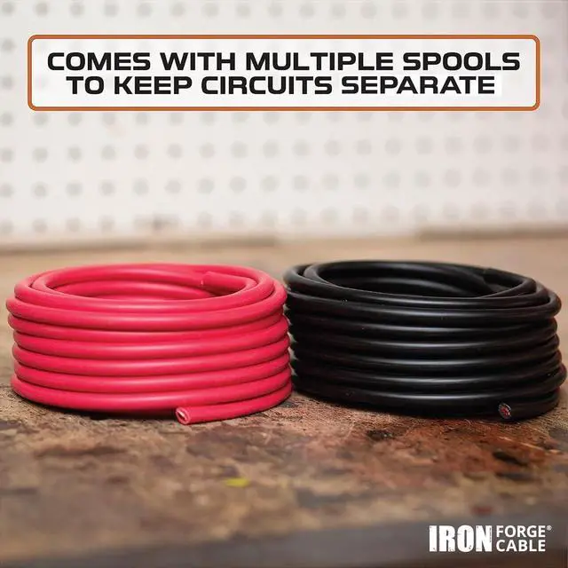 KEEP ORGANIZED: This 2-pack of 4 awg copper wire from Iron Forge Cable comes jacketed in two colors: red and black, making it easy to maintain organization while wiring! Our bundled 4 awg cable is used for various purposes, such as ground wire, welding cable, power cables, vehicle radio, automotive, lighting, indoor lighting.