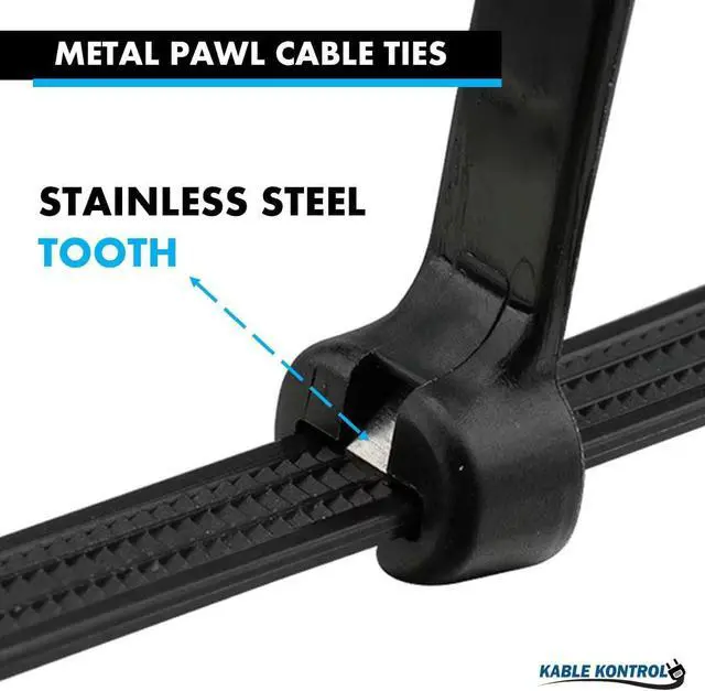 Durable Design: Metal pawl zip ties are made with self-locking toothed design for enhanced reliability and strength.