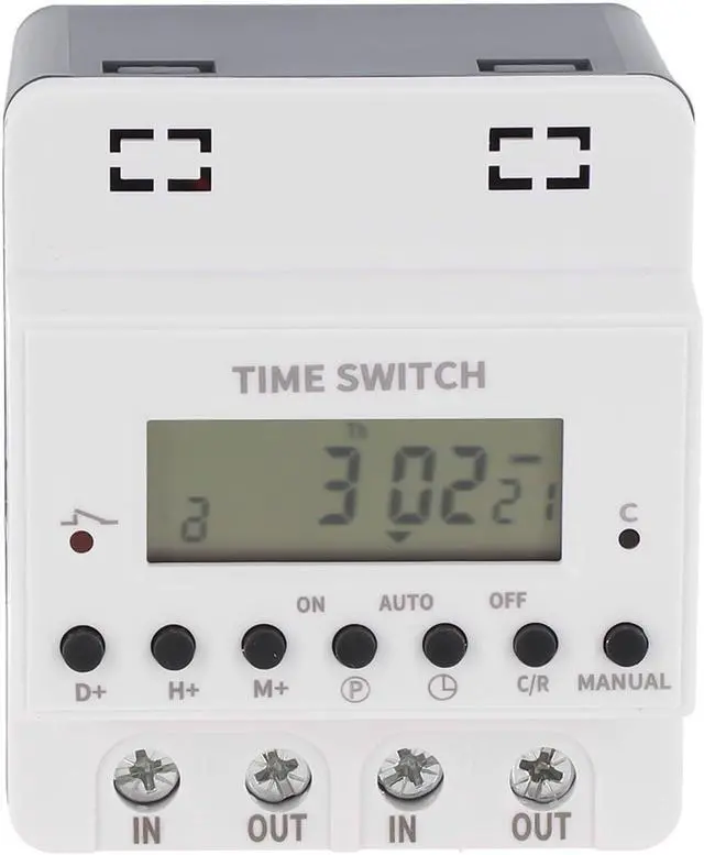 Timing switch automatic time controllerWith this programmable, the timing switch can automatically open and close, eliminating the need for manual operation. For example, you can easily set it to open at 7 pm and close at 8 am, repeating the cycle every day.