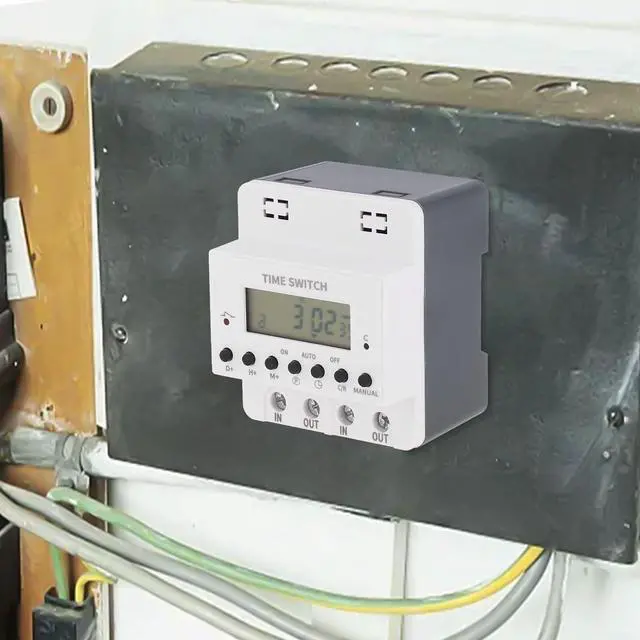 Convenient installation optionsThis intelligent time control switch can be mounted on the wall or rail-mounted, providing flexibility and convenience during installation. Whether you prefer a wall-mounted or rail-mounted installation, this switch is designed to meet your needs effectively.
