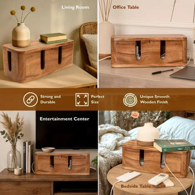 ELIMINATE CABLE CLUTTER WITH STYLE: Add an elegant and organized touch to your decor with this cable box organizer; This large cord management box combines functionality and style