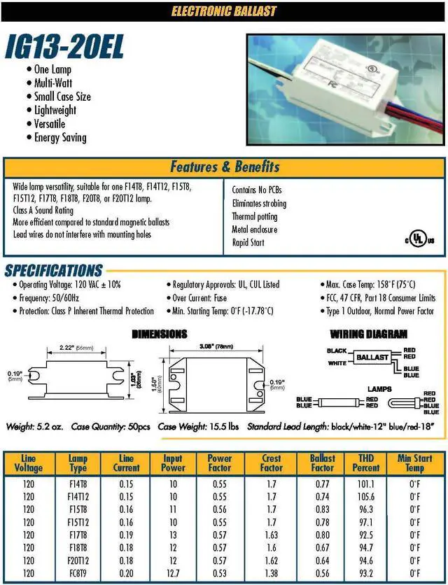 • Reliable Rapid Start Performance: Each ballast operates a single lamp with smooth startup and no flicker - ideal for residential, commercial, and specialty lighting applications.