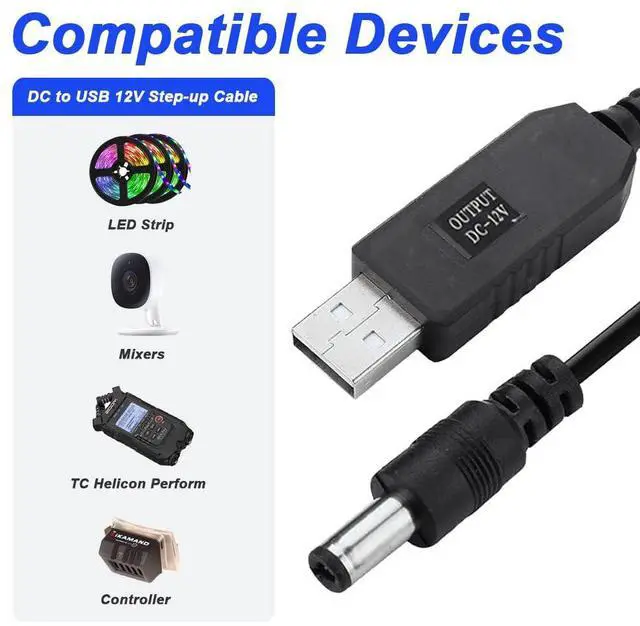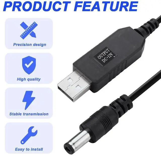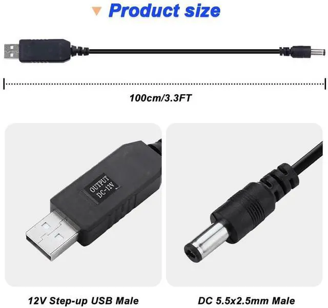 [About the cable]: The USB input is 5V 2A male, please make sure the current is 2A, otherwise the device may not work. The DC output is 12.0V, the maximum current is 0.8A. Note: Not suitable for high current devices.